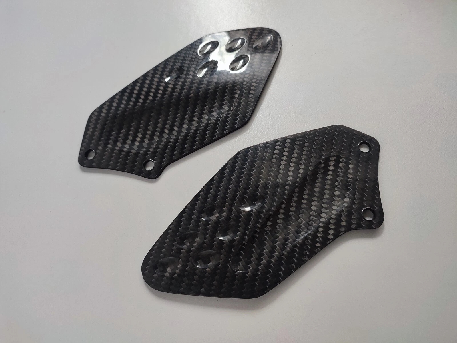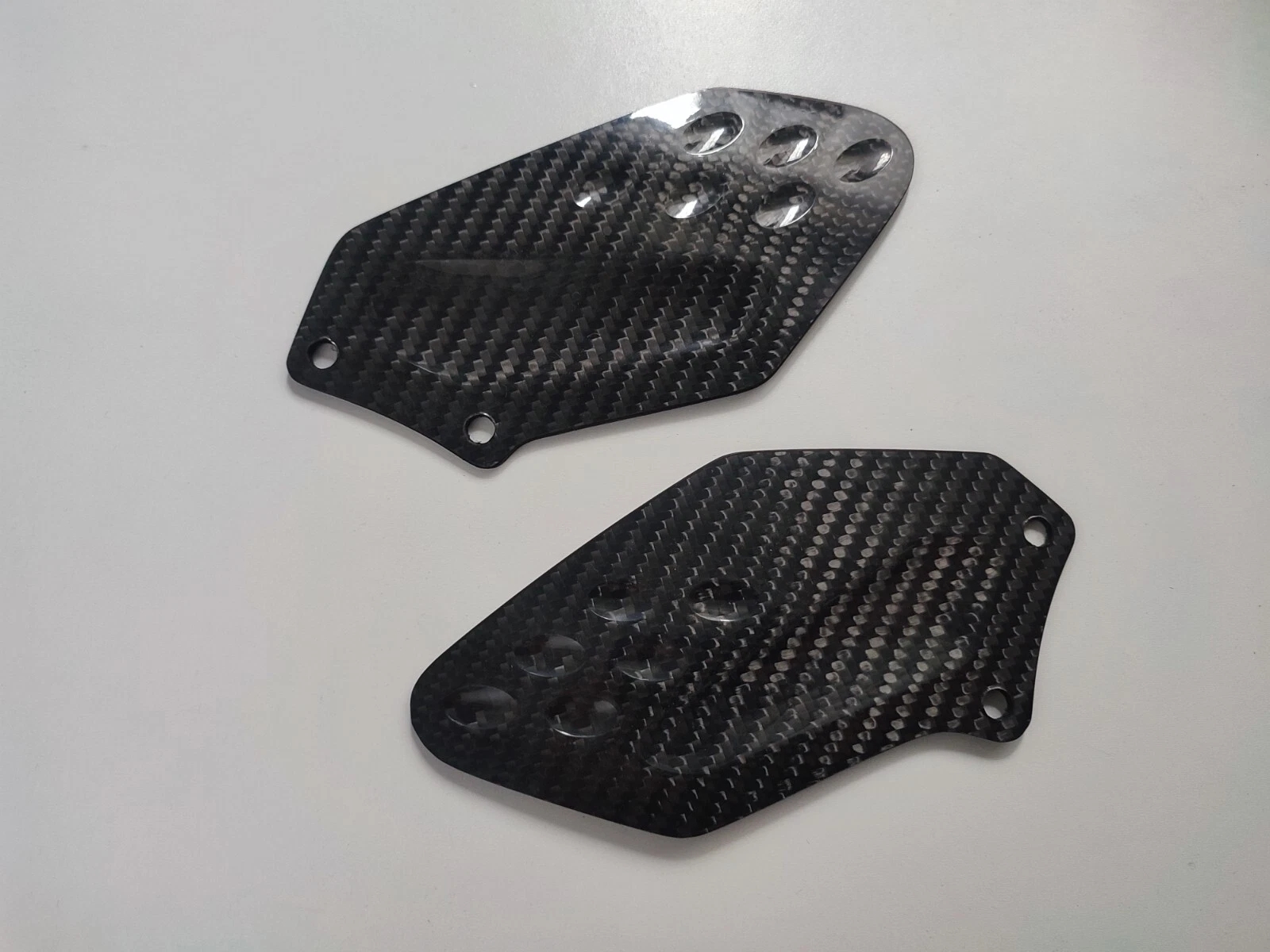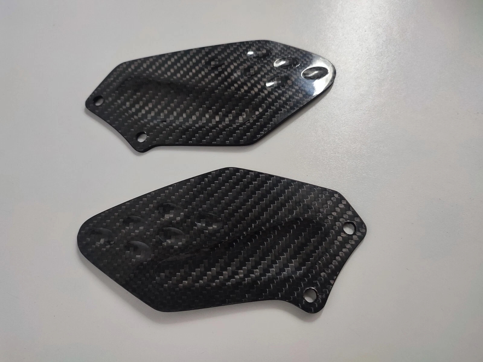Carbon fibre heel guards in twill carbon fibre to fit the BMW S1000RR 2010-2013.