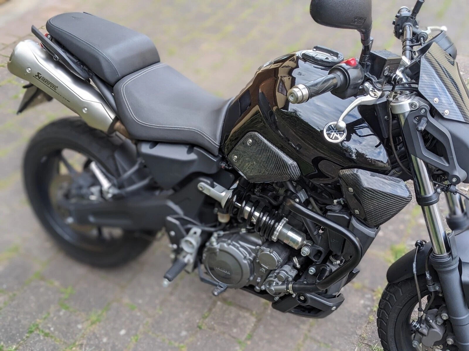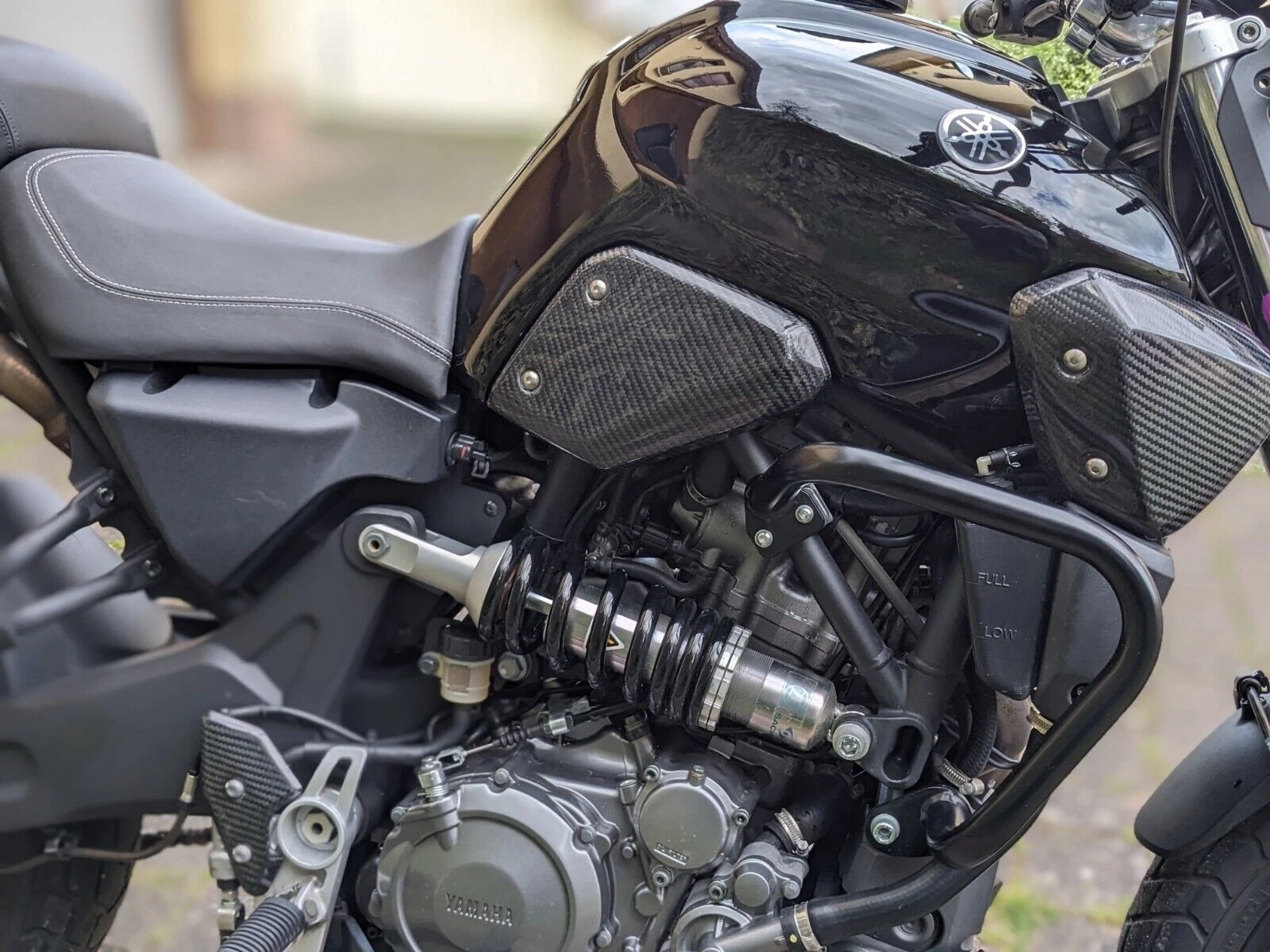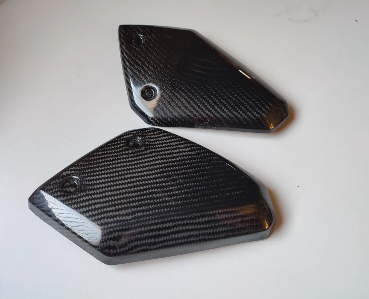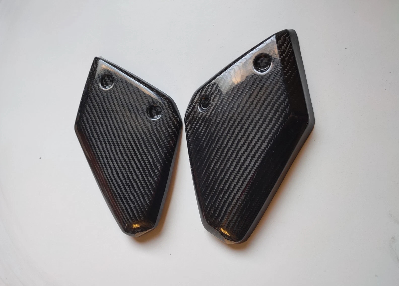Brand new unfitted carbon fibre fuel tank side panels to fit the 660 MT-03 up to 2014. These are a direct replacement for the original part so all bolts should be reused. Please see my other items for sale for other parts for the MT-03 including : Heel guard Exhaust shield Fender extender Flyscreen Radiator panels
