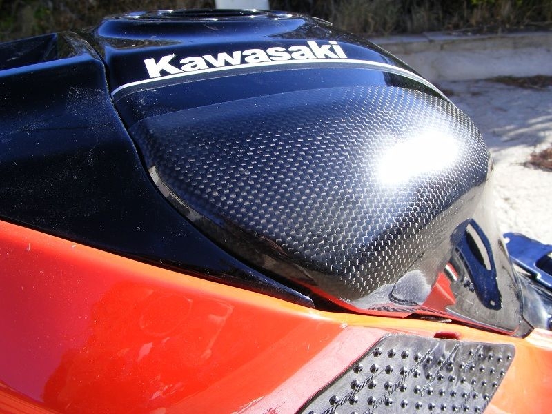 Carbon fibre tank sliders to fit a Kawasaki ZX 10R 2011-2019 The outer layer is high quality twill carbon fibre but inside they are made with 2 layers of kevlar to provide abrasion resistance in the case of an accident. These covers can also be used to cover any previous scratches or damage.